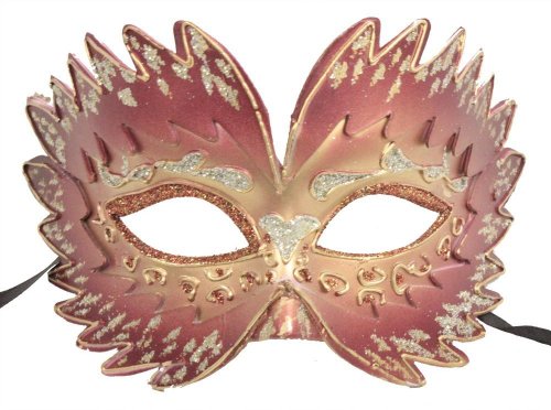 This half style mask is Red and White with Gold accents. The mask has an attached, rigid plastic, 'U' shaped headband which allows the mask to swivel down over the face or up over the head.Forum Novelties Masquerade Style Fairy Mask in Brown - One Size Feature