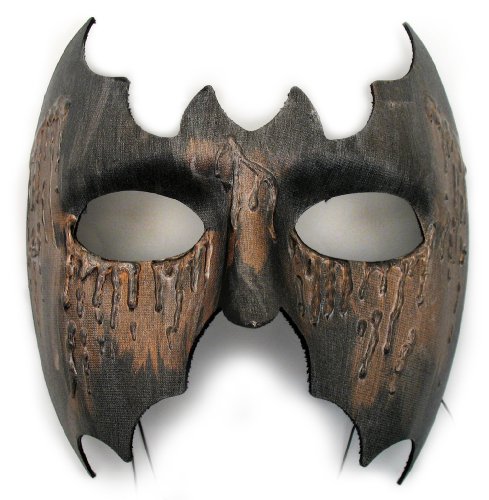 A sculpted bat mask is hand painted with a mix of metallic paints, giving it that scarred effect. It secures with an elastic band. Each mask is our original design and hand decorated in the USA by our talented artists.Scar Face Unisex Masquerade Mask Feature